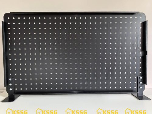 Thông số kỹ thuật: Độ dày 0.8ly, mặt bảng có cuốn cạnh 2cm, đường kính lỗ 0.5cm, khoảng cách lỗ 2.5cm chuẩn để lắp phụ kiện.