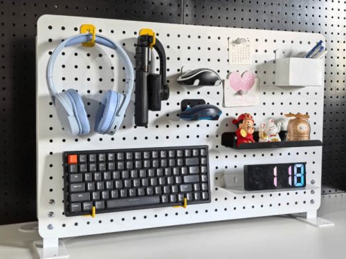 Bảng Pegboard để bàn là một dạng bảng đục lỗ được thiết kế thêm bộ chân đế vững chãi để có thể đứng trực tiếp trên mặt bàn mà không cần khoan tường.