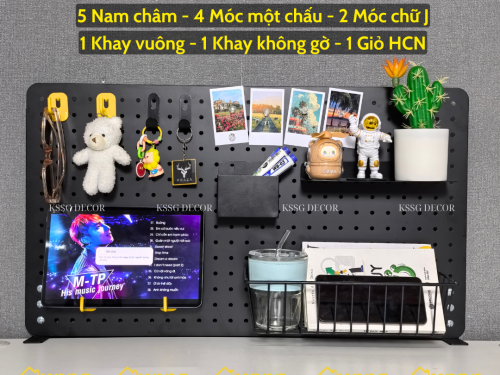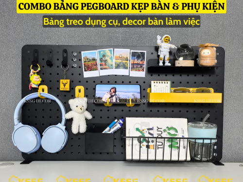 COMBO BẢNG PEGBOARD KIM LOẠI KẸP BÀN VÀ PHỤ KIỆN GẮN BẢNG ĐI KÈM ĐỂ TREO DỤNG CỤ HỌC TẬP, DECOR BÀN LÀM VIỆC CHUYÊN NGHIỆP
