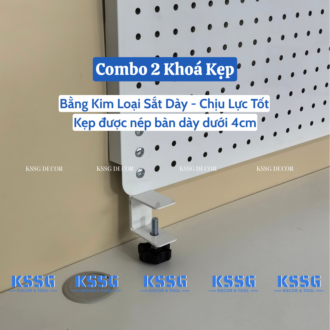 Bảng Pegboard kẹp bàn treo dụng cụ là phiên bản cải tiến của hệ bảng lỗ truyền thống. Thay vì phải bắt vít cố định vào tường, loại bảng này sử dụng hệ thống chân kẹp chắc chắn để gắn trực tiếp vào cạnh bàn.