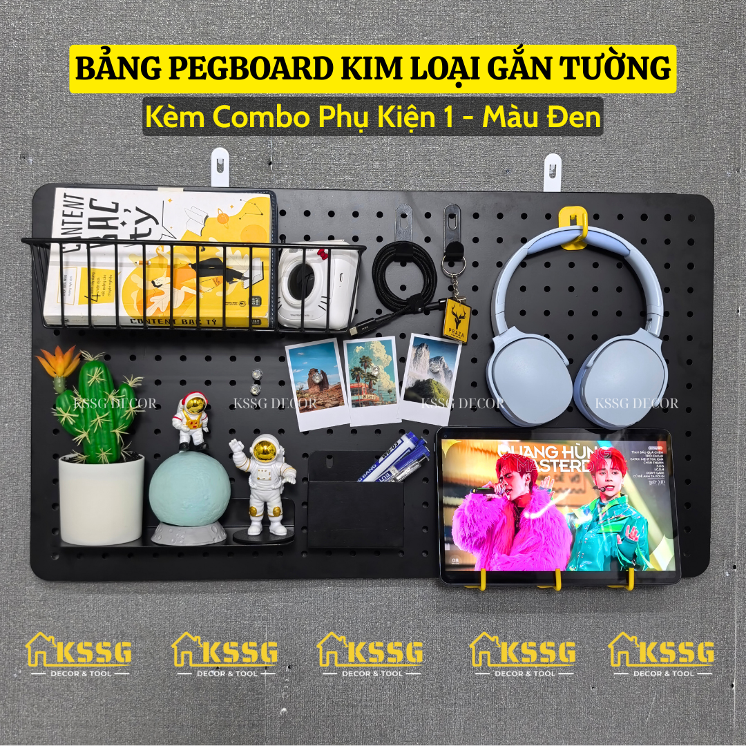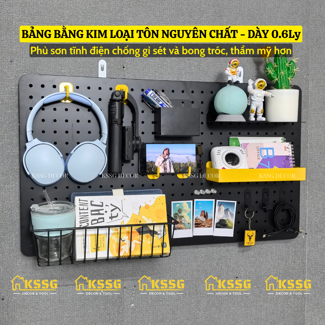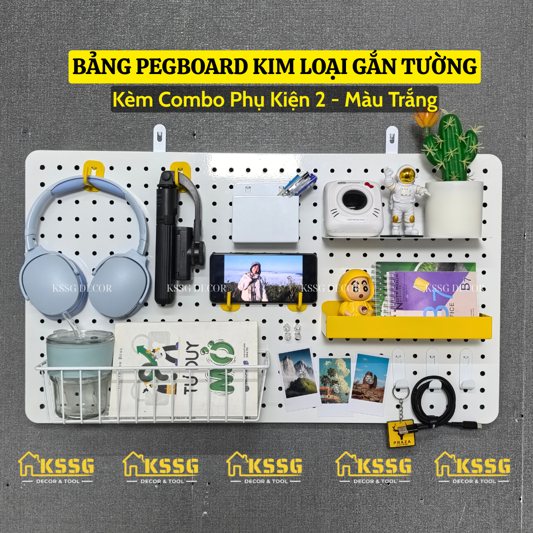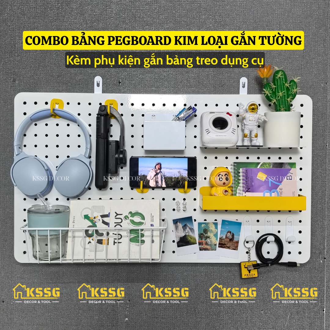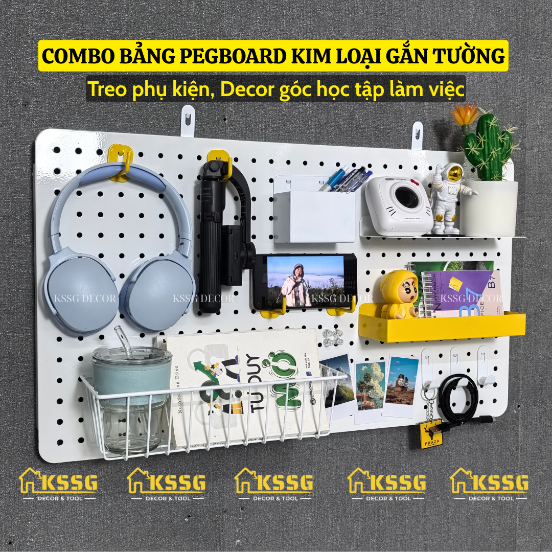 COMBO BẢNG PEGBOARD KIM LOẠI GẮN TƯỜNG CÓ KÈM PHỤ KIỆN