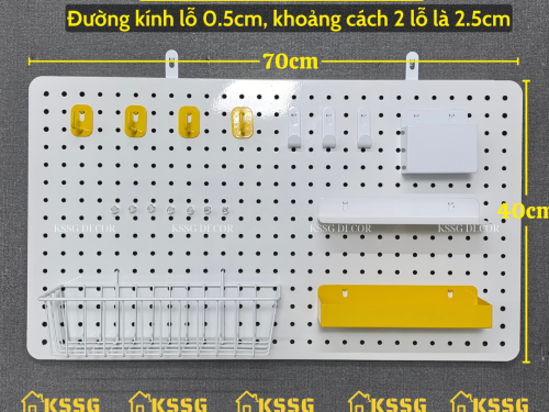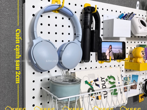 • Chất liệu: bảng Pegboard được làm bằng tôn siêu dày và bền