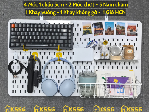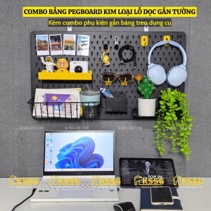 COMBO BẢNG PEGBOARD KIM LOẠI LỖ DỌC KÈM PHỤ KIỆN GẮN BẢNG TIỆN LỢI VÀ LINH HOẠT