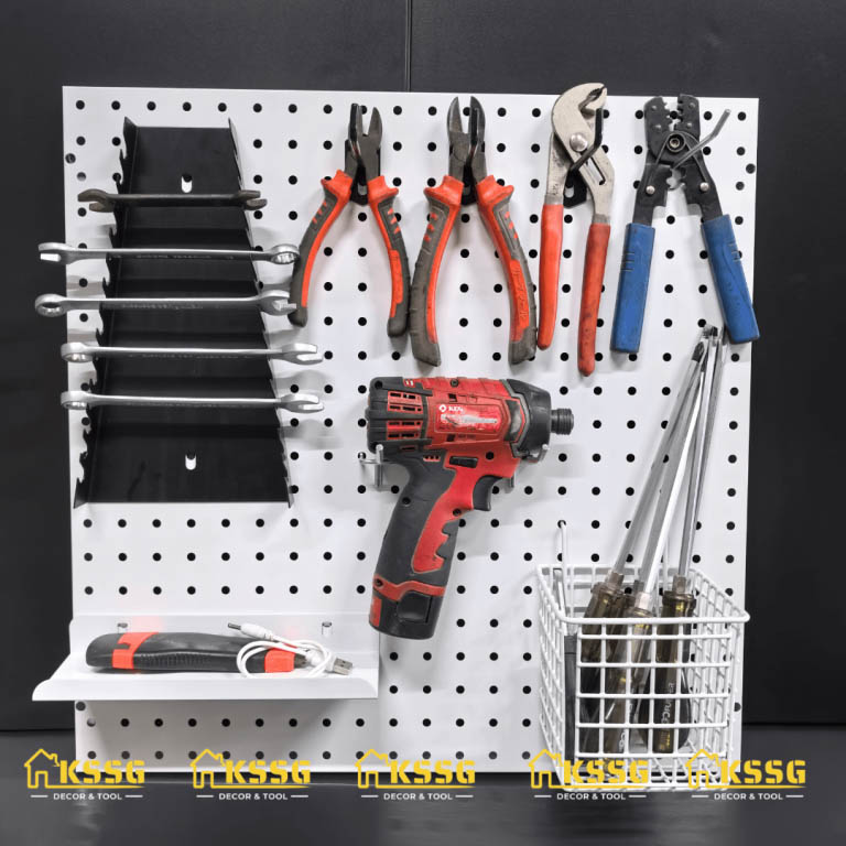 - Bảng treo kìm, búa, tua-vít (dùng móc chuyên dụng).