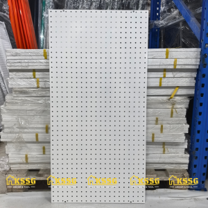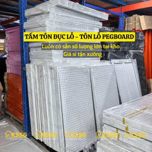 Tấm tôn đục lỗ, còn được gọi là tôn lỗ Pegboard kim loại. Bảng được đục các lỗ tròn cách đều nhau, tạo thành điểm nối gắn các phụ kiện như móc treo, rổ lưới,…để treo các dụng cụ.